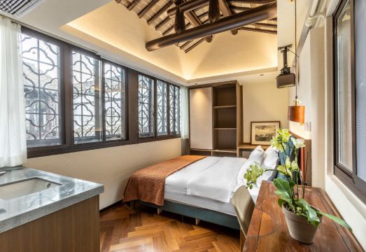 客栈位于美丽的水乡同里古镇的游览区内(提示:8:00-17:00进入古镇需要购买古镇门票,17:00之后免门票进入),古镇中心的三桥旁边就是客栈,推开沿街的玻璃大门,踏在泛黄的旧石板路麪,彷佛穿越时空,流连来回。传世老宅内,新茶慢品仍余香,千载水乡裹,旧书细读尤多味。青砖白墙之下,小桥流水之侧,民国风骨清晰可辨。以新中式屋檐下的民国风貌对外营业。东院是苏式园林庭院,坐看前院繁花盛开,观假山下锦鲤戏水,移步贴水长廊,穿过苏式门楼入主院,回望砖雕“石林余荫”,足踏金山石天井,面对历经百年前的主楼、新民国风格的中堂,两耳古风厢房,时间就此打住。一号楼卧室,临帖、对画、试茶和望云共1.8米大床房,閲书1.5米双床标间,瞻星家庭双大床套房。二号楼卧室,随缘、候月和听雨1.8米大床房,寻幽1.2米双床标间。公共区及其它:1号楼一楼大厅有酒水吧枱,书房可静心描经,二楼是可容纳16人的会议室;2号楼大厅为多功能厅,配备大屏幕液晶电视机和投影幕布,浓情咖啡,清新淡茶,谈天説地。亦可安排私房菜3-4桌,杯盏交错尽欢颜。1号楼和2号楼可分别包栋,30人左右的团建均可接待。具体安排提前预约最江南管家。